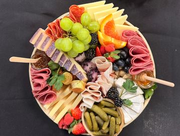 A great graze for 5-8 people! This 11" round board is full of delicious treats including: